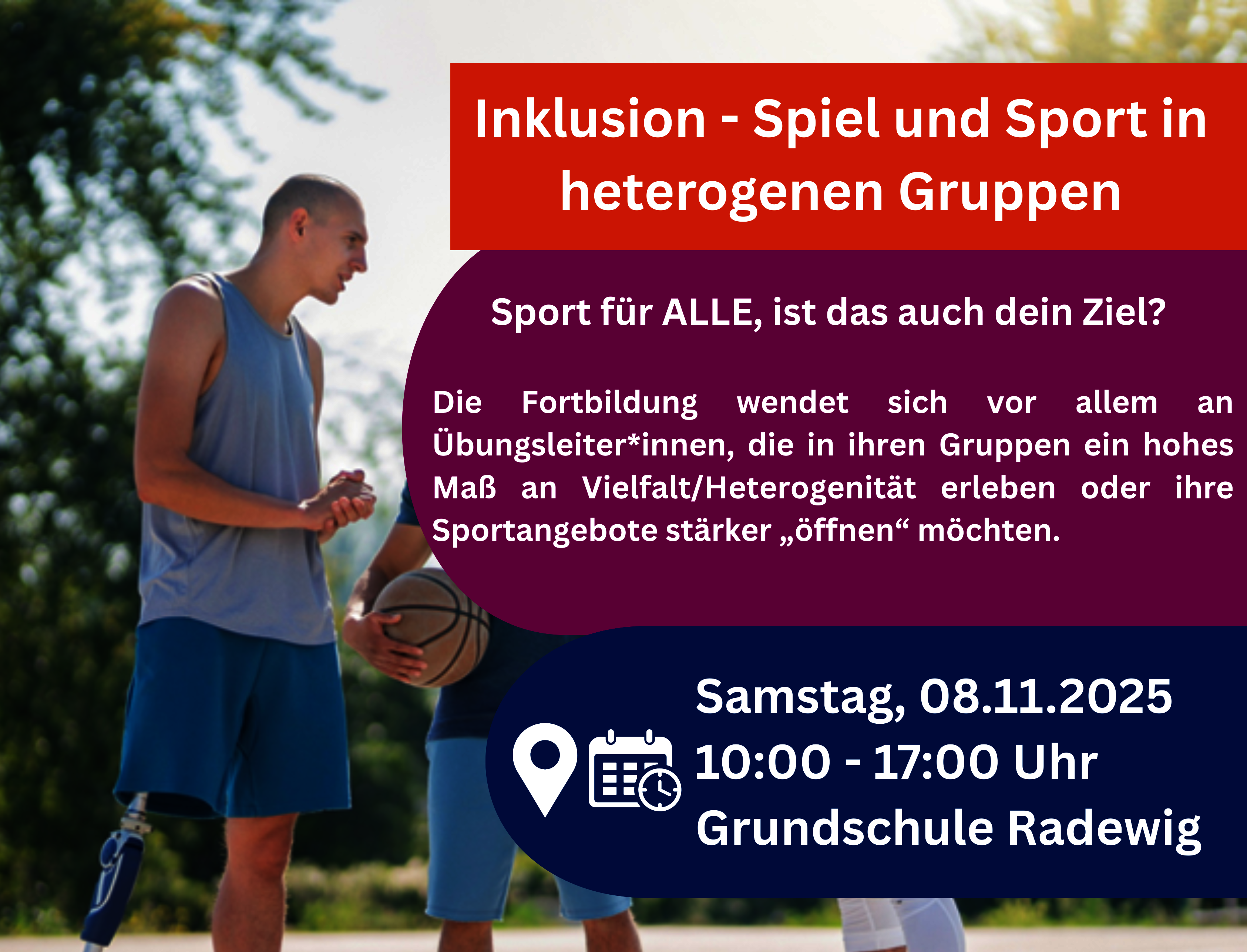 Die Veranstaltung soll interessierte Übungsleiter:innen für das Thema Inklusion sensibilisieren, also eine Einführung in das Thema vermitteln, sowie Basiswissen, Orientierungshilfen und methodische Hilfen geben.